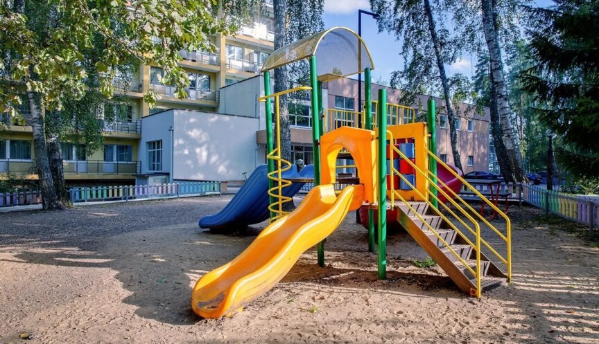 Для юных гостей в отеле есть большая детская площадка. Игровая площадка, выполненная из натуральных природных материалов, с современными горками, качелями, каруселями и песочницей расположена у корпуса №1.
